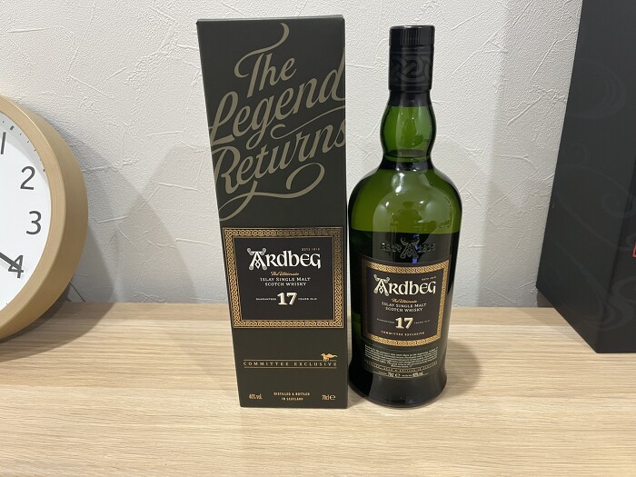 こちらのボトルは、2004年に販売終了したアードベッグ 17年が、2024年に約20年ぶりに、販売されたボトルです。旧ラベルとの違いは、新ラベルには金縁の中にアードベック17年と表記されており、旧ラベルでは、金縁はなく黒く、長いラベルでした。アードベック17年は、需要が多く、旧ラベルも非常に買取が高い傾向にあります。今回は、箱付き美品の為、こちらの買取価格となりました。箱がない場合、箱の汚れやキャップ部分の傷み、ラベルが傷んでいる場合減額対象となります。
